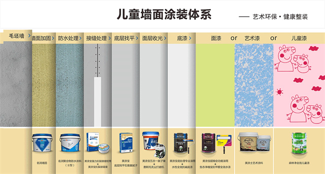 嘉麗士藝術(shù)水漆推出的兒童墻面涂裝體系,囊括了膩?zhàn)?、防水、接縫等產(chǎn)品于一體,所有產(chǎn)品均為環(huán)保無(wú)毒的綠色產(chǎn)品,層層環(huán)保,從底到面,呵護(hù)墻面的健康。而墻面體系的推出,不僅豐富了產(chǎn)品線,更給經(jīng)銷商增加了更多贏利點(diǎn)。