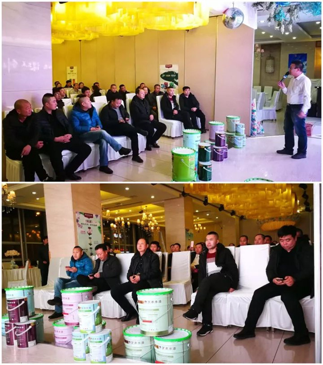 12月8日,四平嘉麗士藝術(shù)水漆舉辦了開業(yè)后的第一次新品上市推廣會,會議邀請了四平當(dāng)?shù)剌^有影響力的幾個裝飾公司工長及油木工師傅等人參加。在會議開始前,與會人員參觀了四平的體驗(yàn)店,他們對大氣、個性十足的店面藝術(shù)漆效果十分感興趣并表示非常適合推廣。
