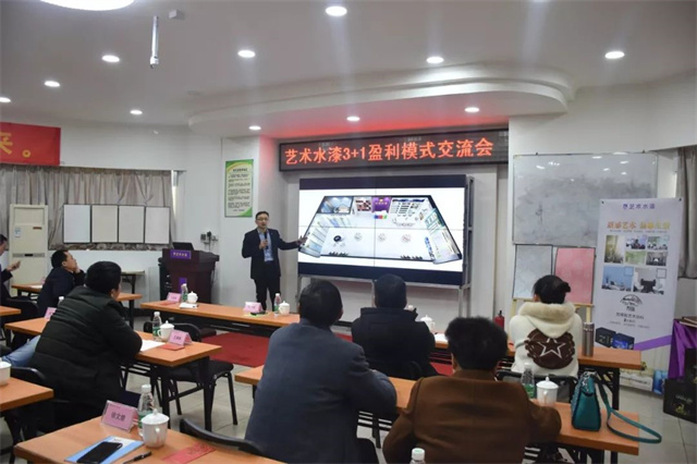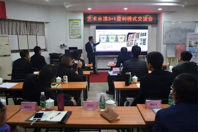隨后,藝術涂料服務部將部長給大家闡述了《梵蒂斯藝術涂料產品介紹及推廣》課題,看著個性十足、藝術質感的樣板,在座各位興致滿滿,不停地向蔣部長提問,甚至一度推遲了會議的時間。