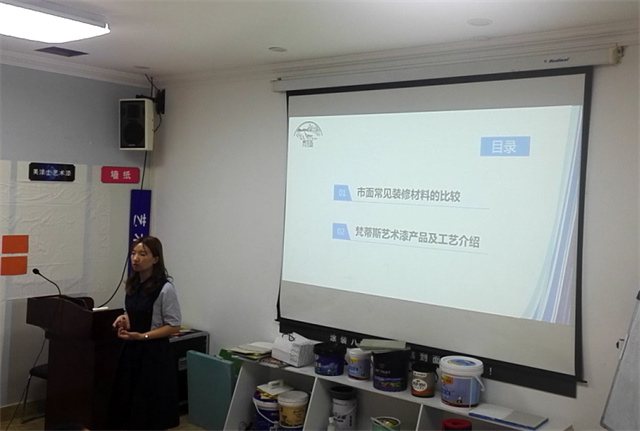 緊接著,渠道總監(jiān)陳秋汝女士對5月新上市的產(chǎn)品開展培訓(xùn)。本次兩款新品藝術(shù)漆——“海貝源漿藝術(shù)漆”、“銀鉆砂絨藝術(shù)漆”,效果易做,新手就能施工,解決了傳統(tǒng)藝術(shù)漆效果難做,需要進(jìn)行專業(yè)培訓(xùn)后才能施工的難題。