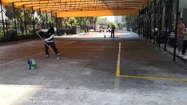 涂刷后的地坪色彩斑斕,活動分區(qū)明顯了