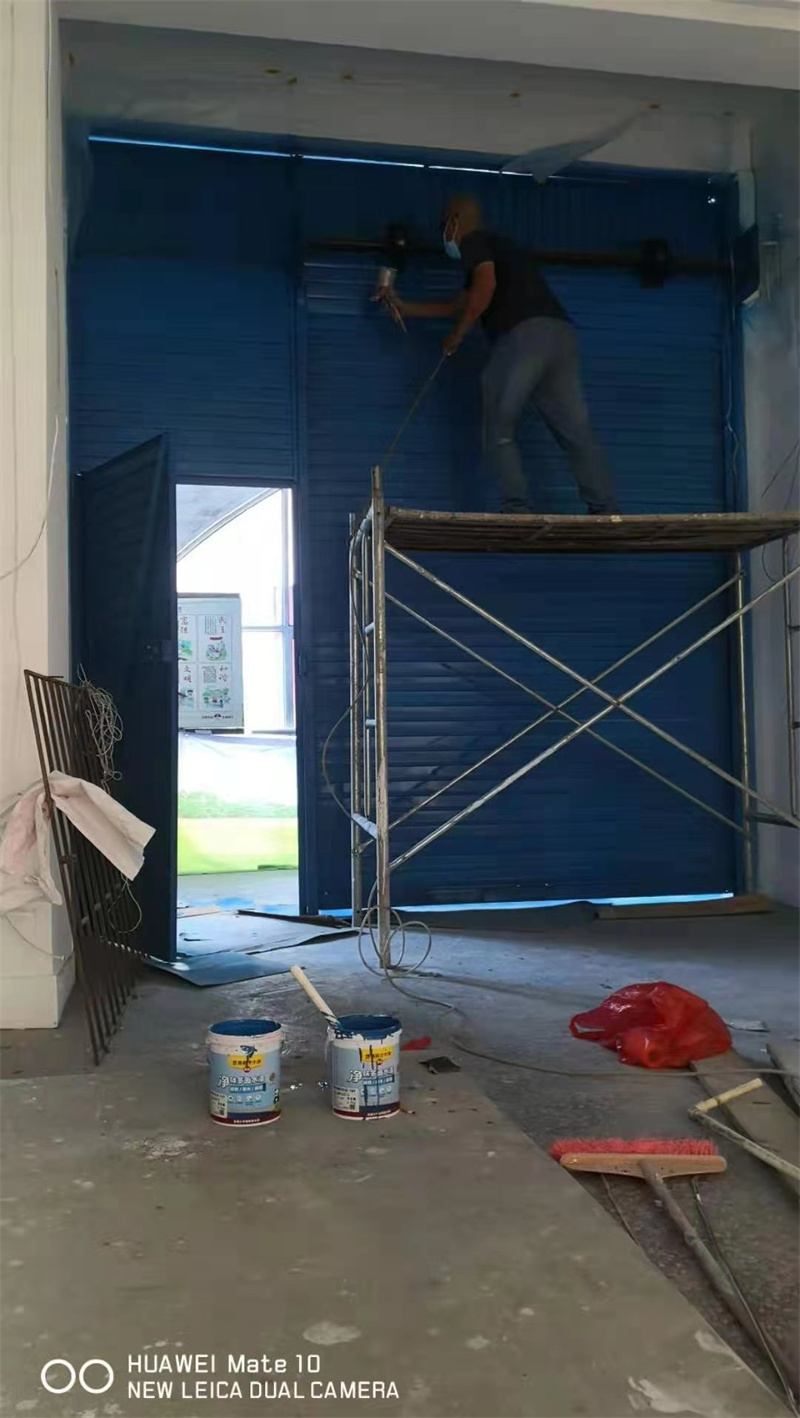卷簾門翻新,噴涂嘉麗士凈味多面水漆中藍(lán)色效果。