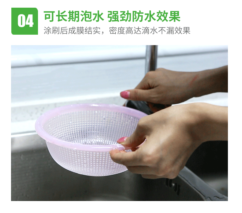 封水寶免砸磚強(qiáng)效耐候防水膜,是以優(yōu)質(zhì)天冬聚脲樹脂、精選助劑、顏填料、固化劑為改性異氰酸脂組成的雙組份產(chǎn)品,混合后產(chǎn)生交聯(lián)反應(yīng)形成高分子透明防水膜,適用于屋頂,水池、廚房、衛(wèi)生間瓷磚表面滲水修復(fù)、內(nèi)墻表面防水防潮處理,讓你重做防水不砸磚,省時(shí)、省工更省錢。