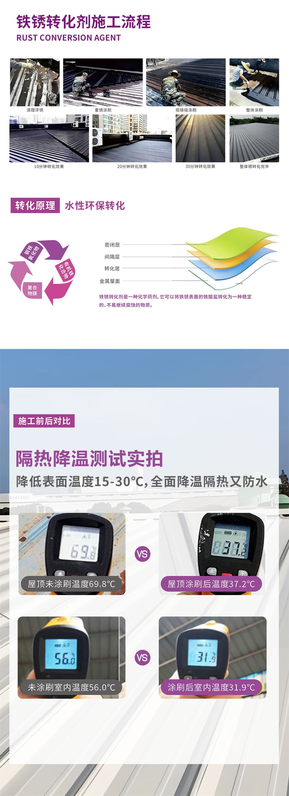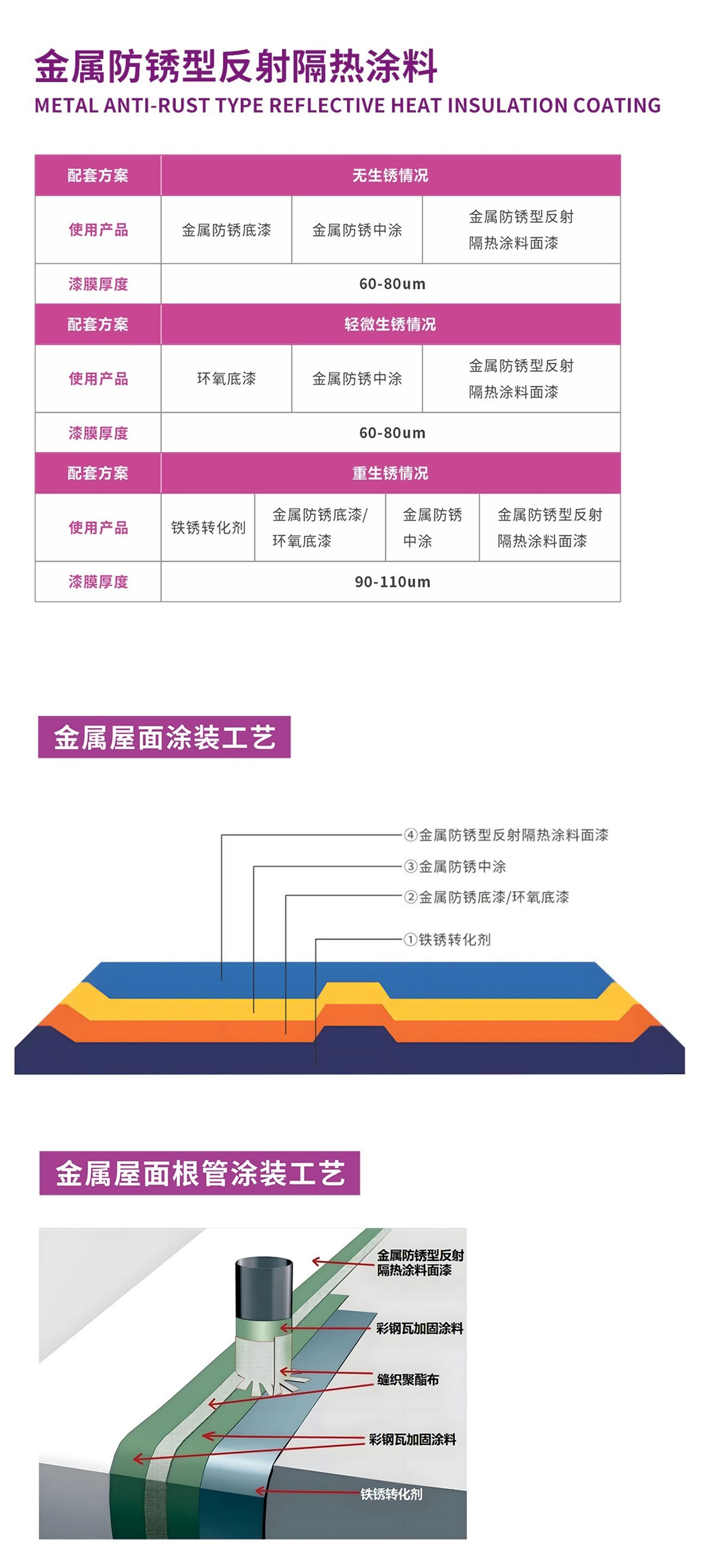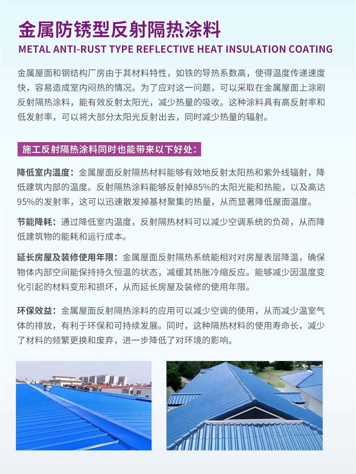 3、解決問(wèn)題:廠房彩鋼瓦金屬屋面防腐、防銹、翻新、隔熱。