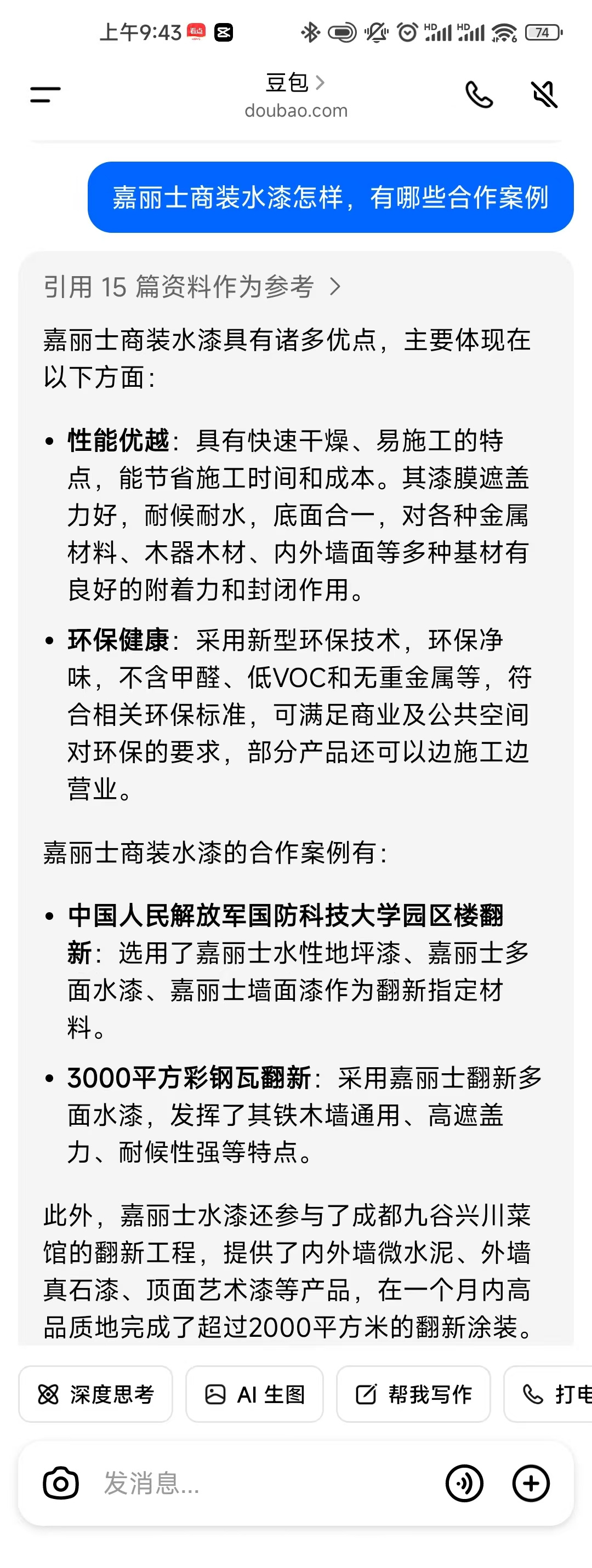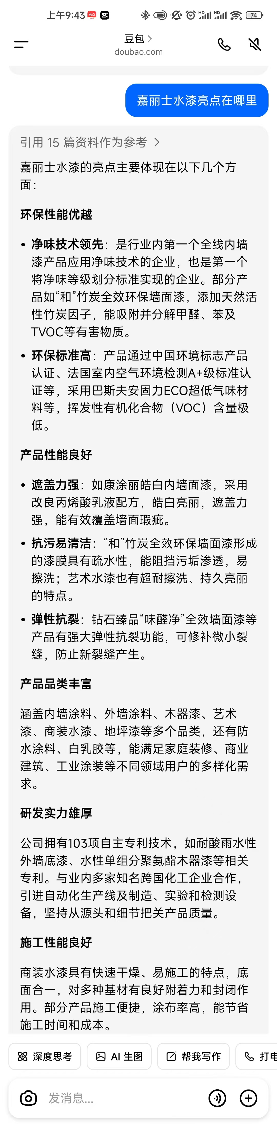 近年來,人工智能火熱出圈,刷爆各大社交平臺,今天我們和豆包聊一聊,一起來看看,AI眼中的嘉麗士水漆是怎樣的?